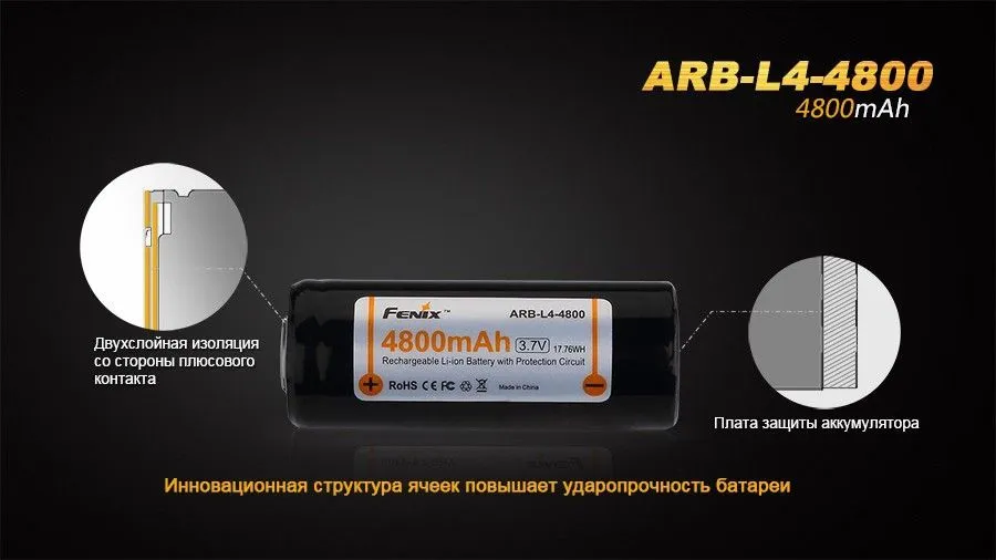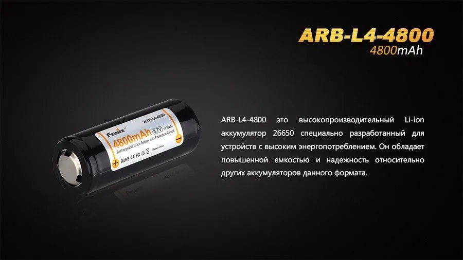 Описание аккумулятора 26650 Fenix ARB-L4-4800 (4800 мАч):
