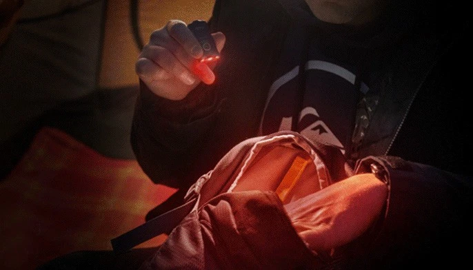 Во-вторых, у фонаря Fenix HM55R три вида света. Есть дальний холодный луч, более теплый ближний, а также красный свет, который помогает сохранить ночное зрение и не слепит окружающих.