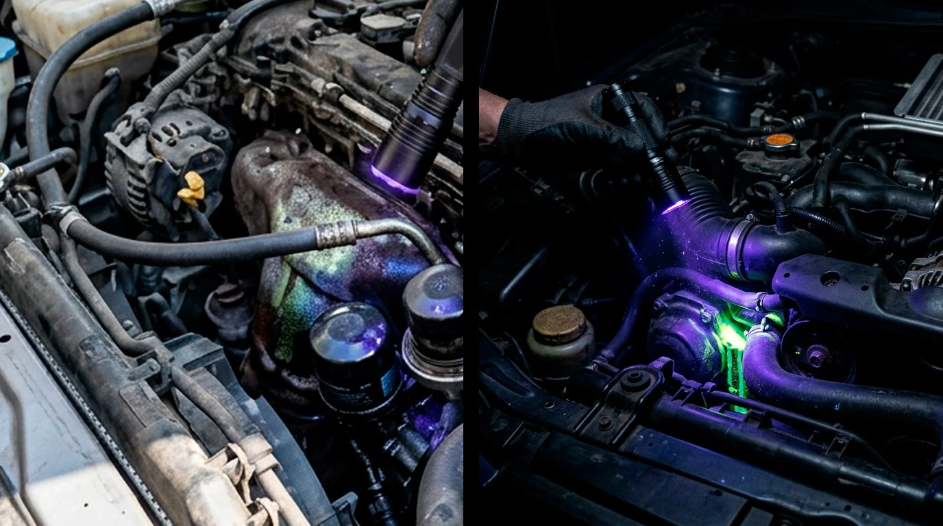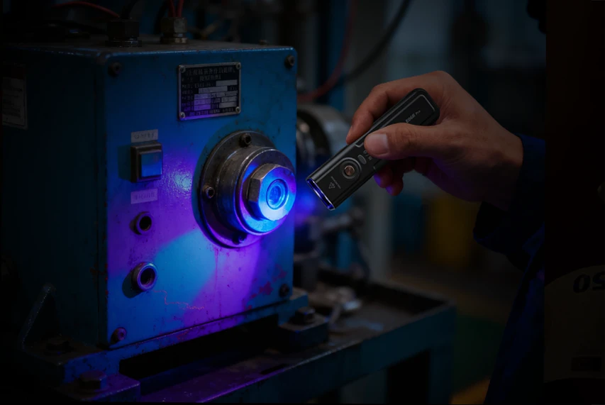 Ультрафиолет активно применяется в технической диагностике. Если в вещество добавлен флуоресцентный маркер, UV позволяет быстро обнаружить утечки и проблемные зоны.