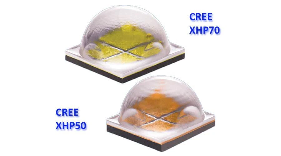 Использование диодов серии XHP, позволяет обойтись минимальным их количеством для достижения необходимой яркости и интенсивности светового луча. Для получения света яркостью около 1000 люмен, потребуется всего три (если говорить о пиковом режиме, то и вовсе один) светодиод XHP. Тогда как диодов предыдущего поколения (XM-L, которые выпущены в 2011 году), потребуется не менее четырех. А диоды XM-L выпуска 2008 года и вовсе создадут луч такой яркости, только если включить 9 штук сразу.
