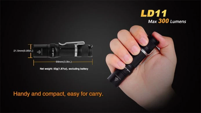 Совсем недавно на рынок вышла еще одна модель фонарей Fenix, получившая название LD11. Это компактный и яркий фонарь для ежедневного использования, который благодаря применению современного светодиода, в состоянии светить с яркостью до 300 люмен. Новинка может похвастать традиционной для этого бренда надежностью и практичностью и претендует на звание лучшего фонаря в своем классе.
