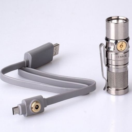 Фонарь использует в работе всего один элемент питания. Но это может быть как аккумулятор 16340, так и обычная батарейка формата CR123A. Максимальное время работы от элемента питания с емкостью 700 мАч составляет 53 часа. Эти данные помогут рассчитать продолжительность работы от аккумулятора, который вы выберете. Кстати, в данной модели реализована популярная сейчас функция подзарядки через кабель USB. Но для модели Fenix RC09Ti имеется индивидуальная особенность. Кабель, который входит в набор вместе с фонариком, крепится к нему для подзарядки посредством магнитной платформы. Также магнит встроен и в торцевую часть корпуса фонаря, чтобы его можно было зафиксировать на любых железных поверхностях.