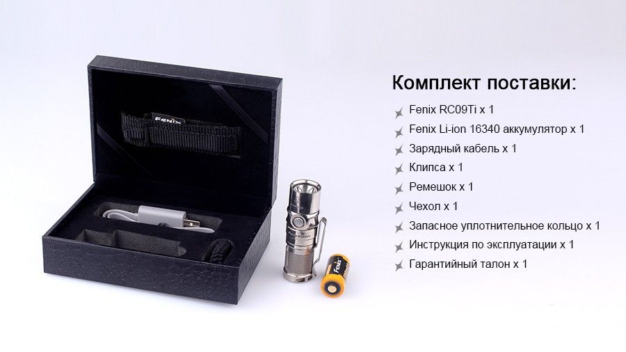 Модель Fenix RC09Ti интересна тем, что этот фонарь очень практичный, в необычном титановом корпусе, с высоким уровнем защиты от нежелательного воздействия извне. Он яркий и удобный в управлении. В то же время, данная модель входит в сегмент наиболее компактных карманных фонарей. А к тому же, продается RC09Ti в подарочной коробке. Все эти факторы делают его отличным вариантом подарка для друга, коллеги или любого другого ценителя активного образа жизни.