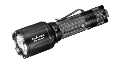 Тактический фонарь Fenix TK25Red имеет два источника света, которые расположены рядом друг с другом. Один диод отвечает за создание нейтрально-белого луча света, это — Cree XP-G2. Он способен работать в одном из 5 режимов с максимальной яркостью до 1000 люмен. Дальность исходящего луча света может достигать 225 метров. Второй — предназначен для создания светового потока красного цвета (Cree XP-E2). Этот диод может работать в одном из 3 режимов с яркостью до 310 люмен. Дальность видимости светового потока может достигать 200 метров.