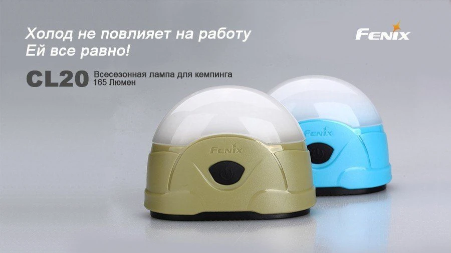 Эта серия — новая для компании Fenix. Пока она включает лишь одну модель — фонарь CL20, но в будущем производители обещают ее расширить. CL фонари предназначены для кемпинга. Это влагозащищенное устройство с диффузионным фильтром особой конструкции, который позволяет получить мягкий рассеянный свет, достаточный для освещения территории с радиусом 10 м. Фонарь достаточно универсально крепится к различным поверхностям при помощи петли и встроенных магнитов. Помимо 9 диодов белого света с суммарной мощностью светового потока 165 люмен, в CL20 встроены 2 дополнительных красных светодиода.