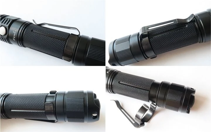Как и у модели PD35, у нового фонаря есть съемная металлическая клипса. По умолчанию, она присоединяется ближе к хвосту фонаря. Однако поскольку аккумуляторный отсек можно повернуть и прикрутить к голове и хвосту обратной стороной, положение клипсы тоже легко изменяется. Кроме того, нет риска, что фонарь может зацепиться клипсой обо что-нибудь таким образом, что она слетит.