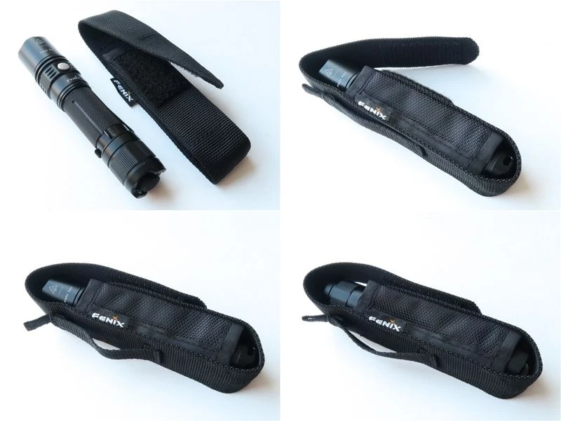 Фонарь Fenix PD35 TAC продается уже в комплекте с нейлоновым чехлом, который закрывается на липучку. Фонарь помещается в этот чехол и вверх и вниз головой.
