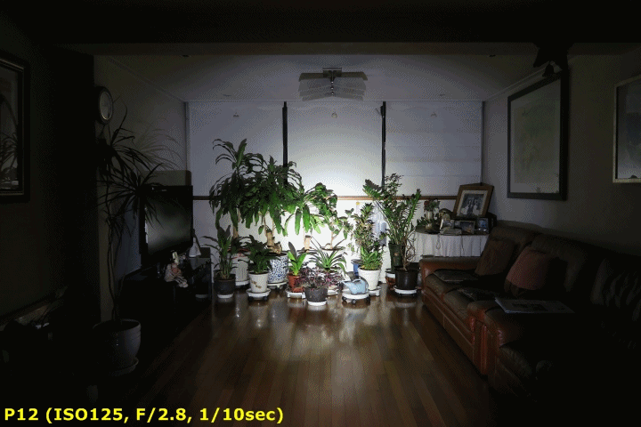2. Снимки освещения внутри помещения на расстоянии 7 метров. Сделаны при таких настройках фотоаппарата: ISO125, F / 2.8, 1/10 секунды, AWB. Использовался аккумулятор 18650 (2600mAh) VicLite со встроенной защитой.