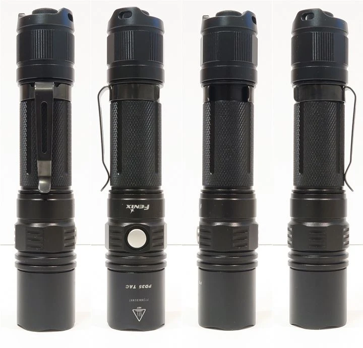 Как и у модели PD35, у нового фонаря есть съемная металлическая клипса. По умолчанию, она присоединяется ближе к хвосту фонаря. Однако поскольку аккумуляторный отсек можно повернуть и прикрутить к голове и хвосту обратной стороной, положение клипсы тоже легко изменяется. Кроме того, нет риска, что фонарь может зацепиться клипсой обо что-нибудь таким образом, что она слетит.