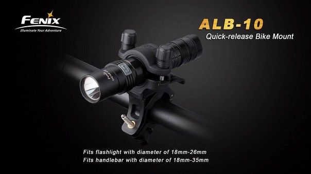 Сегодня мы спешим сообщить о новом универсальном аксессуаре от Fenix ALB-10 Bike Mount, который даст любому фонарю (диаметром от 18 до 26 мм) возможность побыть велофарой (на рукоятке диаметром от 18 до 35 мм).