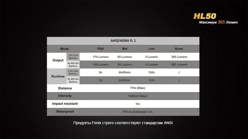 Пока мы еще не спустили фонарь под воду, но то, что его корпус прочный, можно говорить с полной уверенностью. На него даже можно наступить и не опасаться, что корпус треснет, ведь он — металлический. Ну и компактность тоже немаловажна: Fenix HL50 даже не будет заметен в вашем кармане.