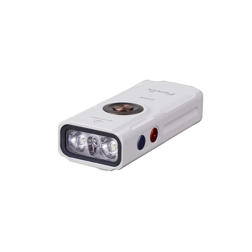 Компактный плоский корпус обеспечивает удобный захват и легкость хранения. Фонарь-брелок Fenix E06R весит всего 54 грамма и не займет много места в сумке или в кармане. Миниатюрный фонарь оснащен отверстием для брелока и клипсой, что позволяет носить его различными способами — например, закрепить на козырьке бейсболки и использовать в качестве налобного фонаря при занятиях спортом.
