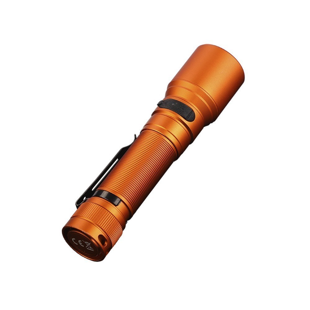 Фонарь изготовлен с применением крепкого алюминия A6061-T6. Есть антиабразивное покрытие с твёрдым анодированием HAIII премиум-класса. Габариты модели составляют 133*32*23 миллиметра, весит 103 грамма, не учитывая веса аккумулятора. Хорошо защищён от влаги и пыли, стандарт защиты – IP68. Переносит без повреждений падение с высоты одного метра.
