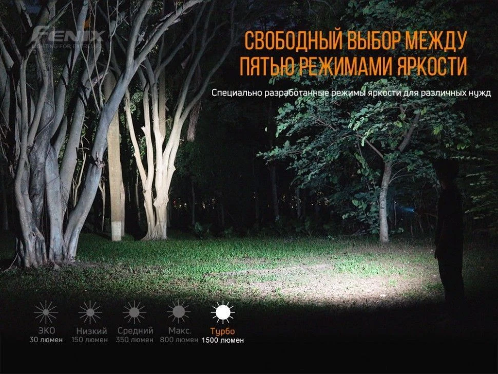 - Турбо: Наибольшая мощность, предусмотренная здесь. Световой поток даёт в полторы тысячи люменов. Дальность действия луча составляет 200 метров. В этом режиме способен функционировать на протяжении чуть более двух часов.