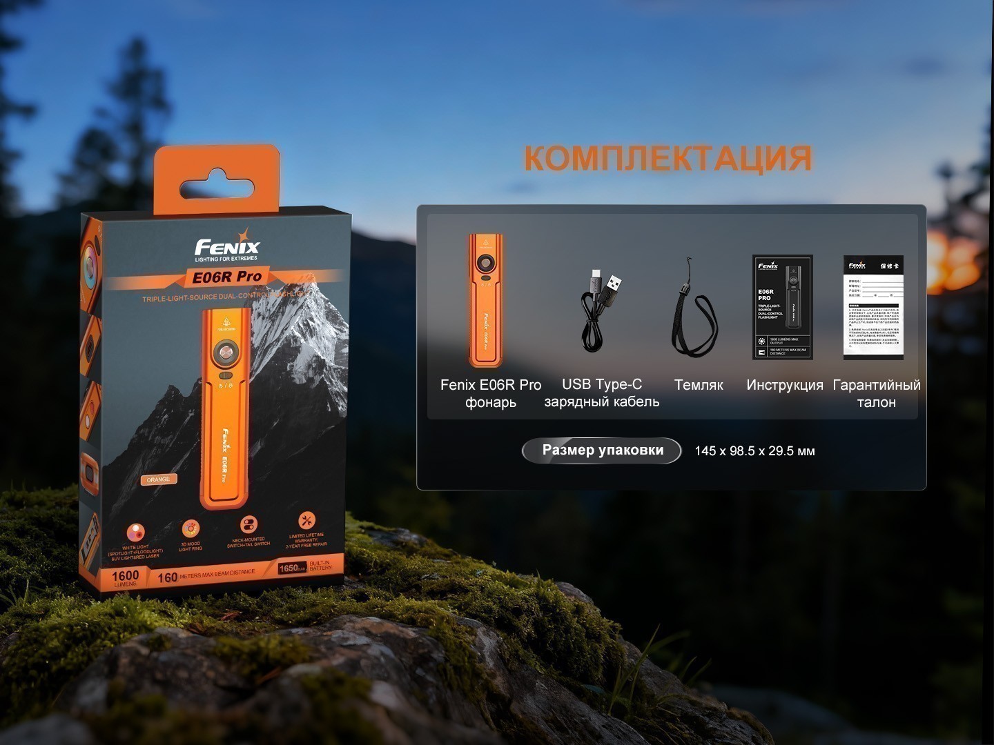 | Комплектация | Фонарь Fenix E06R Pro, USB Type-C зарядный кабель, темляк, декларация соответствия ЕС, руководство пользователя, гарантийный талон | |||||||||||||||||||