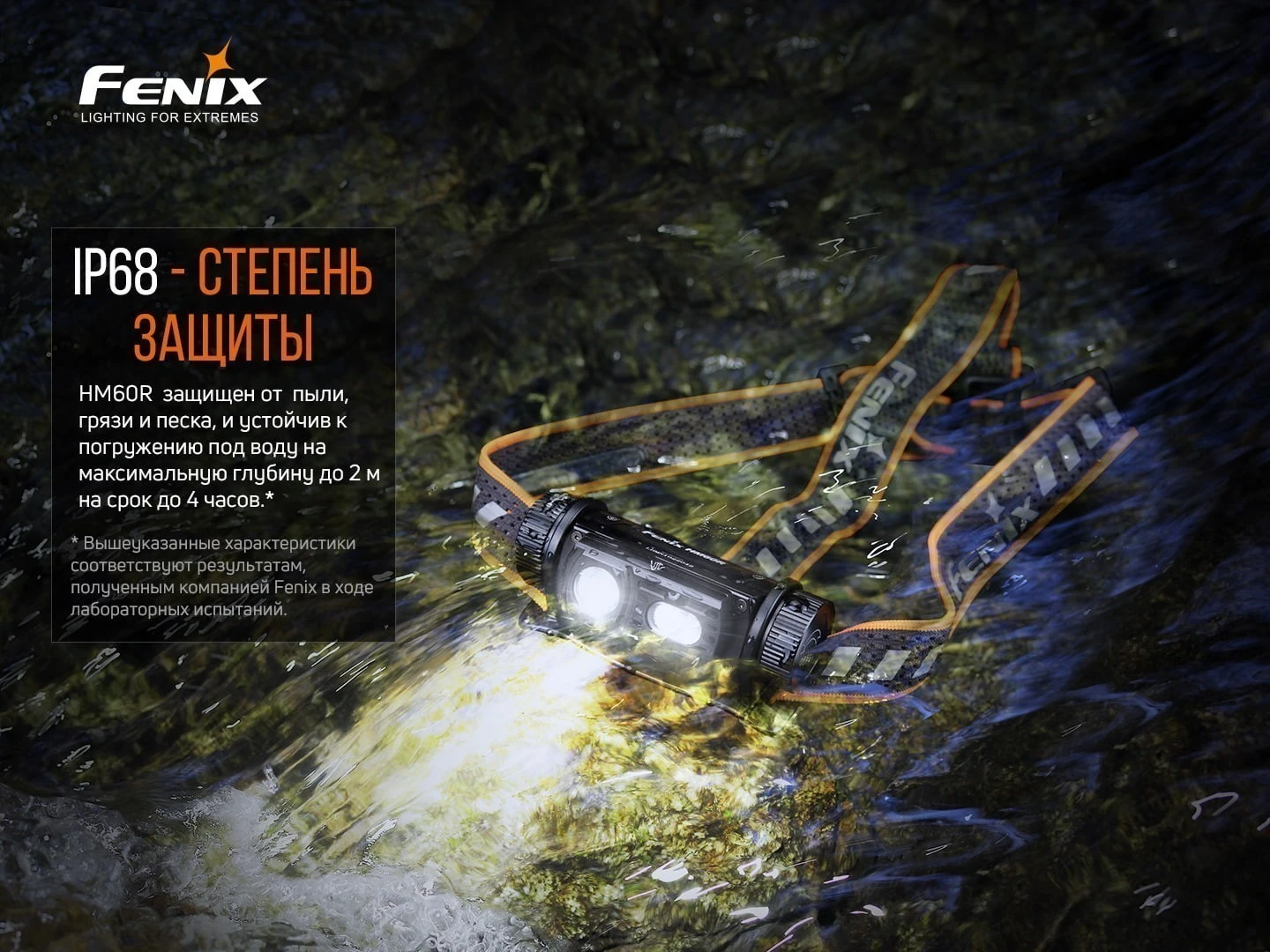 Комплектация | Фонарь Fenix HM60R, аккумулятор Fenix ARB-L18-3400 Li-ion,кабель для зарядки USB Type-C, запасное уплотнительное кольцо, инструкция, гарантийный талон. |