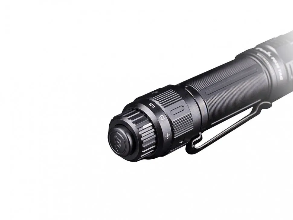 PD36TAC характеризуется тактической кнопкой с тремя функциями: нажатие вполсилы (включение, выключение, выбор режима), нажатие до щелчка (длительная работа в «Дежурных» режимах), нажатие и удержание 0,8 секунды (Строб). Тактические режимы усиливают фонарь более быстрым управлением, а также облегчают выбор Максимального режима и мгновенного Строба. Перейдите в «Дежурные» режимы, для этого поверните переключатель. Фонарь имеет шесть уровней яркости, в том числе, сигнал «Стробоскопа». Механическая кнопка исключает магнитные помехи.