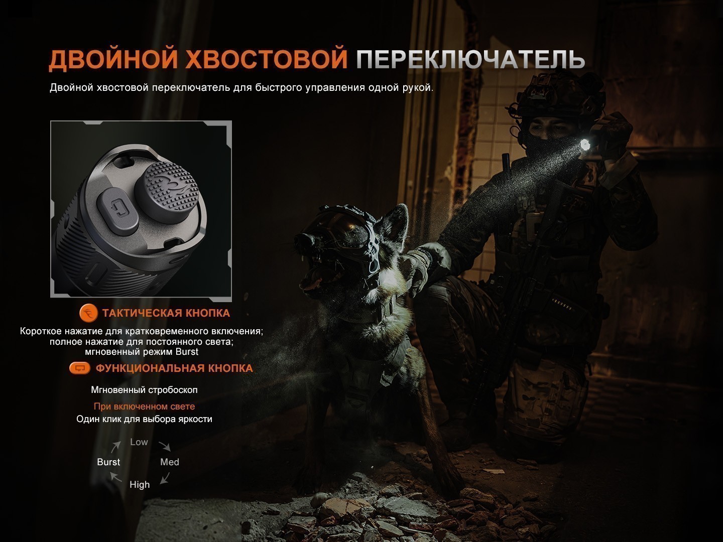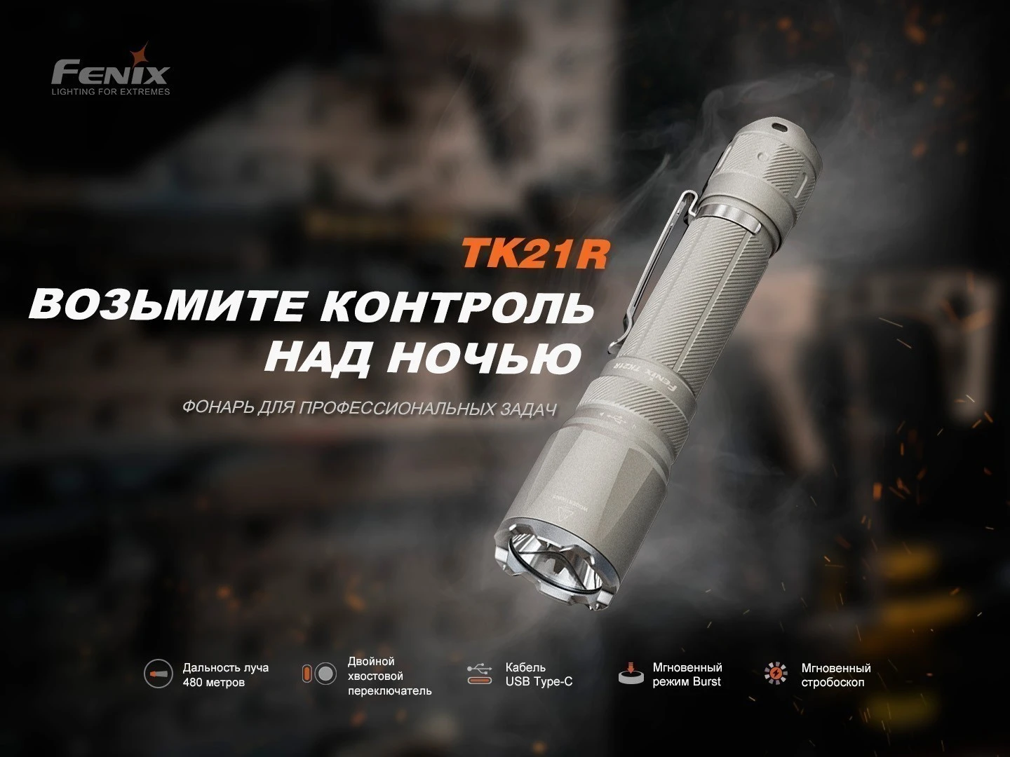 Fenix TK21R — это надежный и мощный инструмент, сочетающий в себе высокую яркость, тактическое управление и прочную конструкцию, что делает его идеальным выбором для профессионалов, которым важно качество, безопасность и функциональность.