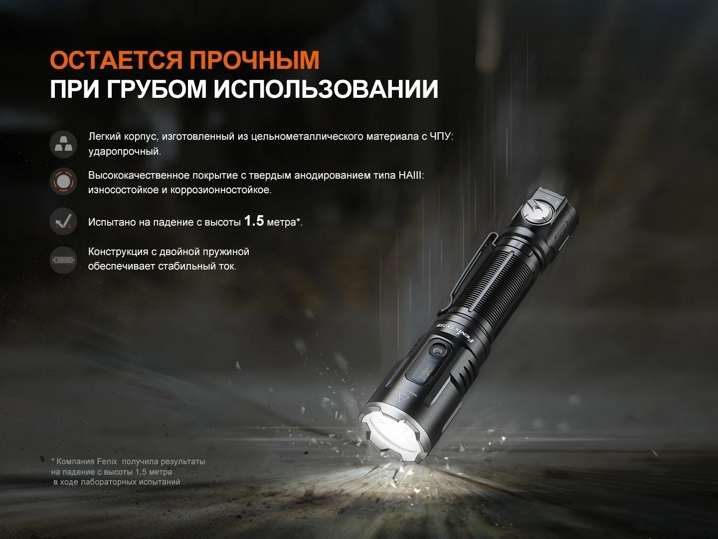 Водонепроницаемый фонарь Fenix TK25R IP68 защищён от пыли и способен выдерживать погружение в воду, сохраняя работоспособность в самых сложных условиях. Корпус из прочного алюминия рассчитан на серьёзные нагрузки. Такой мощный тактический фонарь сочетает компактность, прочность и функциональность, оставаясь удобным в ношении и использовании.
